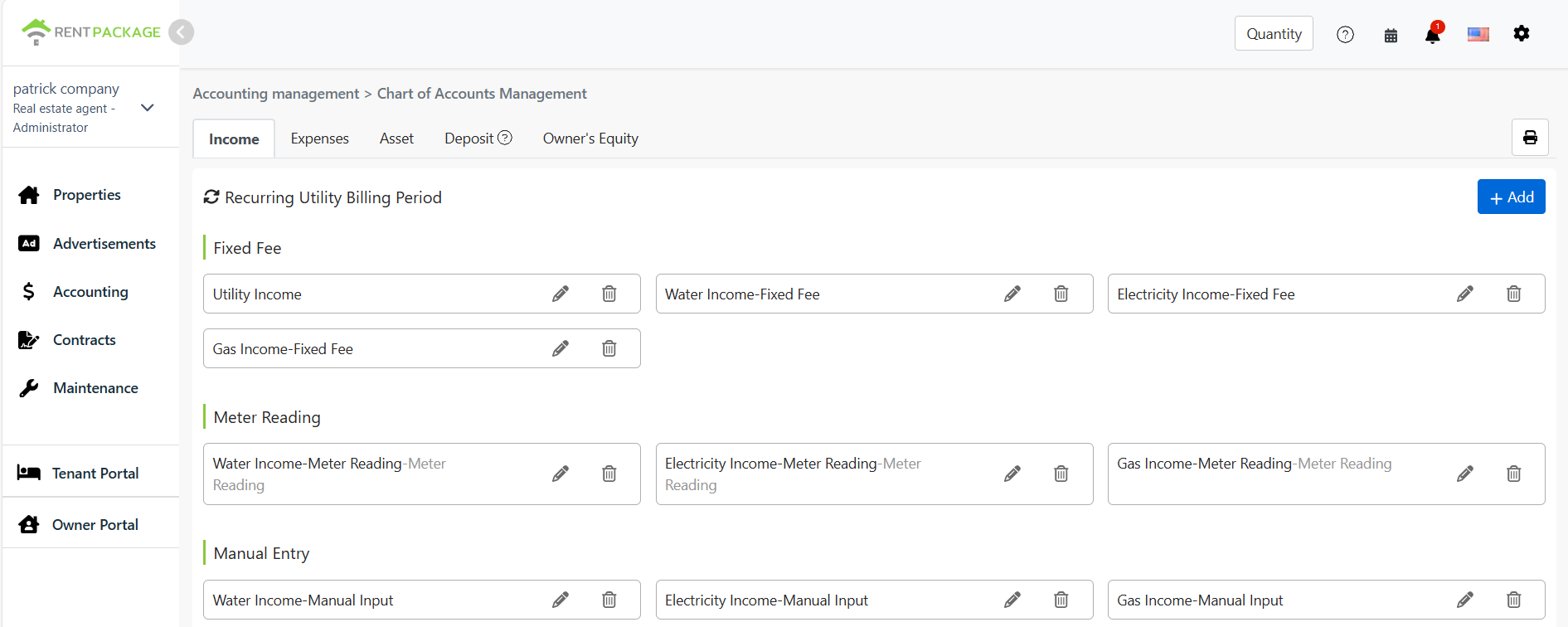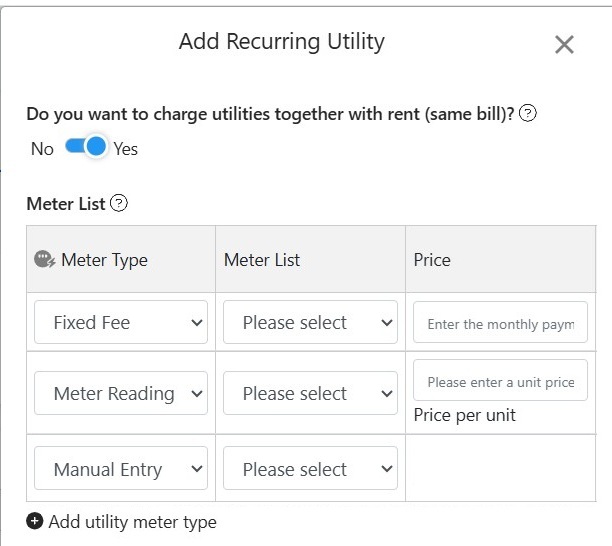 - Click [+ Add], then choose Metered, Manual entry, or Flat fee