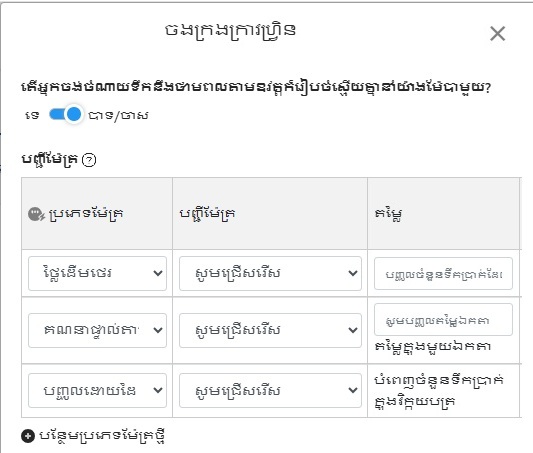 - ចុច [+ បន្ថែម] អាចជ្រើសរើសគណន៍តាមមនុស្ស, បញ្ចូលដោយដៃ, ថ្លៃថេរ