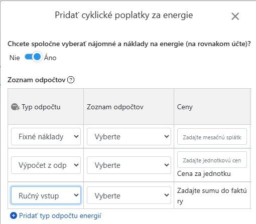 - Klicka på [+ Lägg till], välj mellan mätaravläsning, manuell inmatning, fast avgift