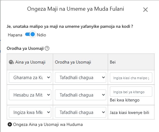 Ongeza vipengee vya mapato vya aina mbalimbali za huduma kulingana na mahitaji yako, fuata njia ifuatayo: