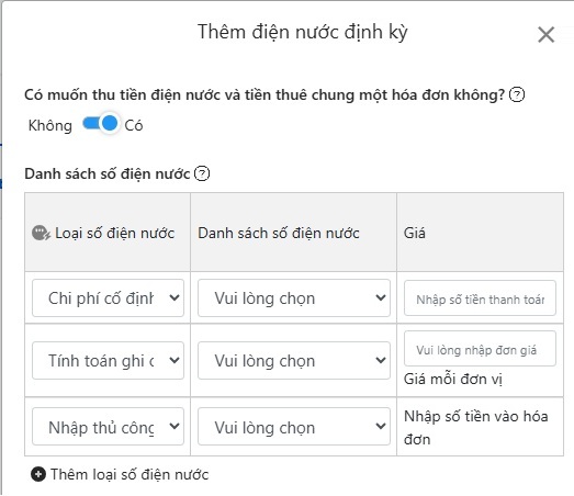 Hướng dẫn thiết lập nhóm chu kỳ hóa đơn tiền điện nước